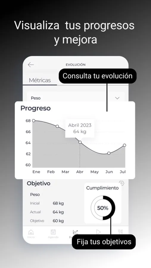 Dispondrás cuando quieras de tu plan de nutrición y entrenamiento para organizar tu día a día y planificación de una manera cómoda y fácil .