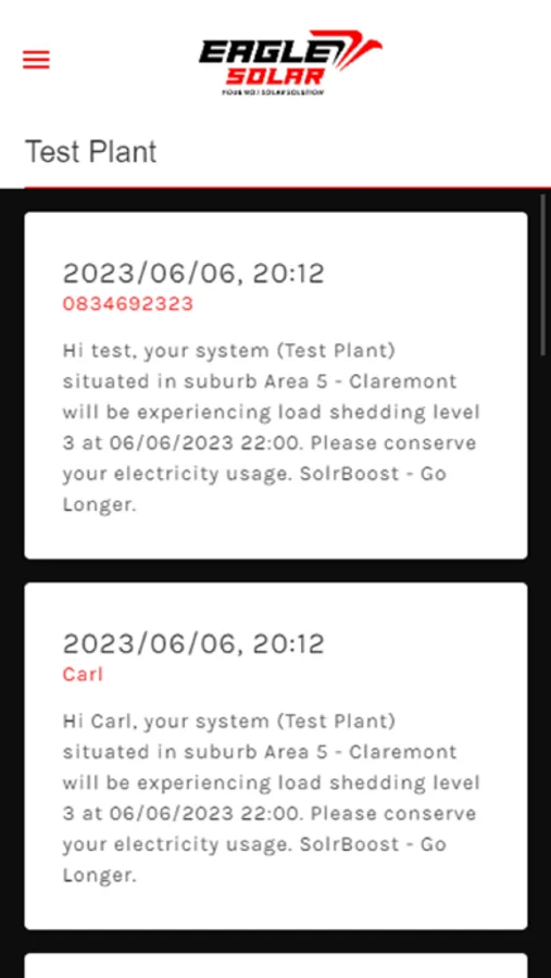 Mobile Application for Eagle Solar customers. Customers can register for push notifications, see their loadshedding schedules as well as historical messages sent to them.