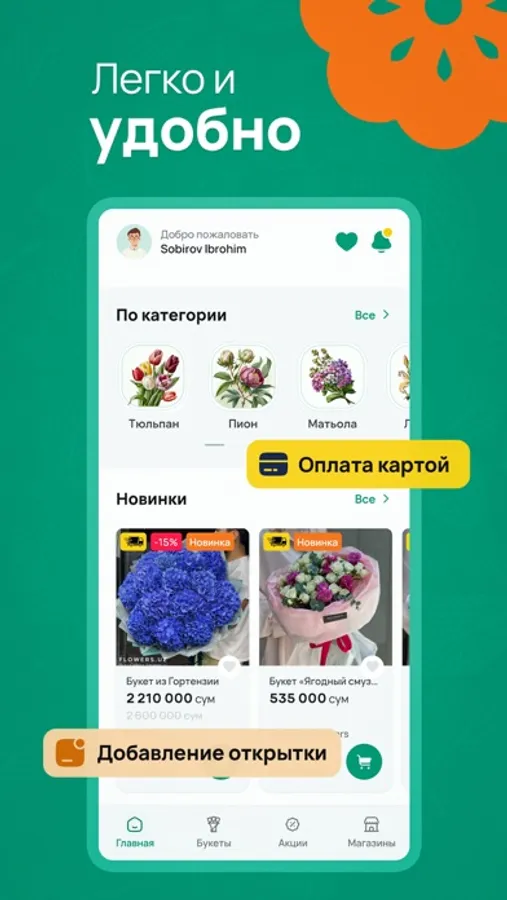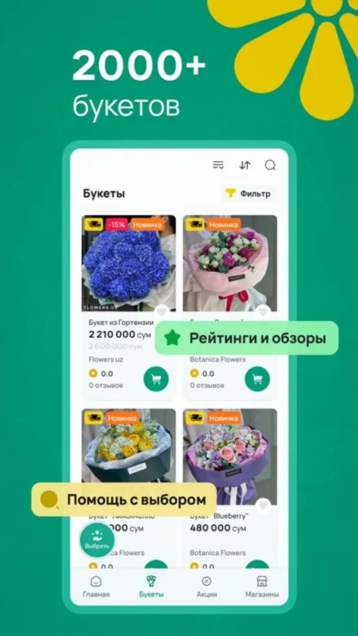 Buchet - ваш персональный магазин цветочных букетов прямо на вашем устройстве! Независимо от того, ищете ли вы идеальный подарок для особого случая или просто хотите порадовать себя красивым цветочным ароматом, Buchet предлагает широкий выбор прекрасных букетов, которые удовлетворят любой вкус.