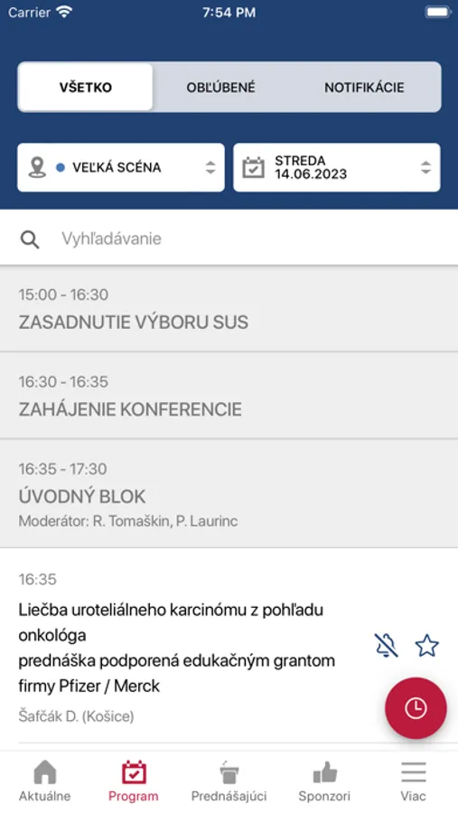 Odborný program kongresu "30. VÝROČNÁ KONFERENCIA SLOVENSKEJ UROLOGICKEJ SPOLOČNOSTI" ktorý sa koná v dňoch 14 až 16 júna 2023 v divadle Jonáša Záborského v Prešove