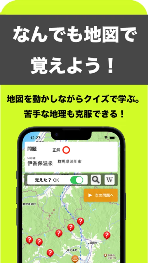クイズに答えながら、地名や関連する物事を覚えていきましょう!!