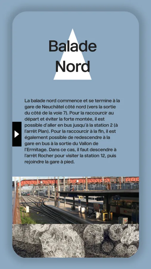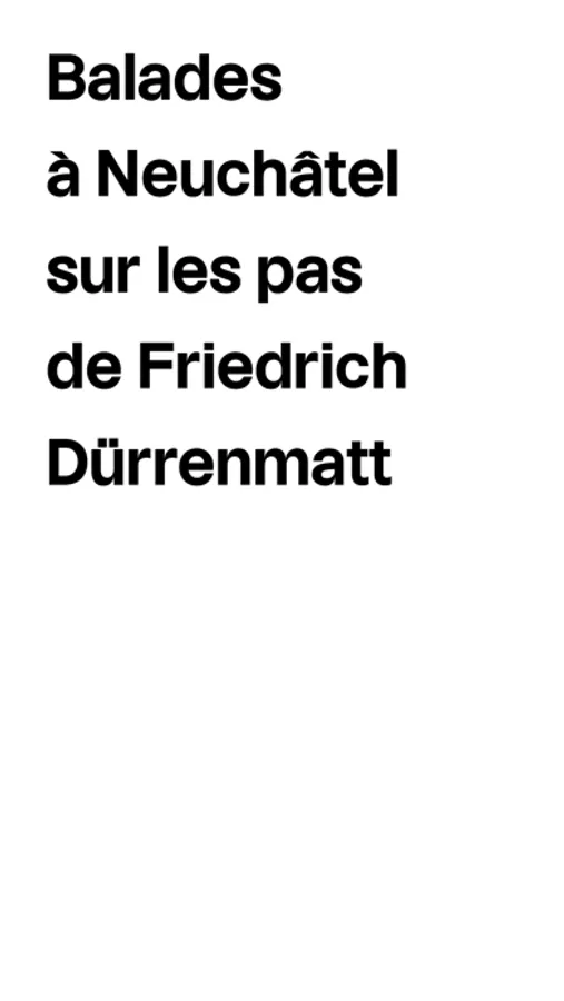 L'écrivain et artiste suisse Friedrich Dürrenmatt, mondialement connu, a vécu près de 40 ans dans les hauts de la ville de Neuchâtel. L'application présente deux balades par lesquelles on apprend à connaître des lieux significatifs de sa vie dans la ville et ses environs (26 stations en tout). Elles offrent en même temps la découverte de beaux sites neuchâtelois, commentés par des citations et des images de Dürrenmatt.
