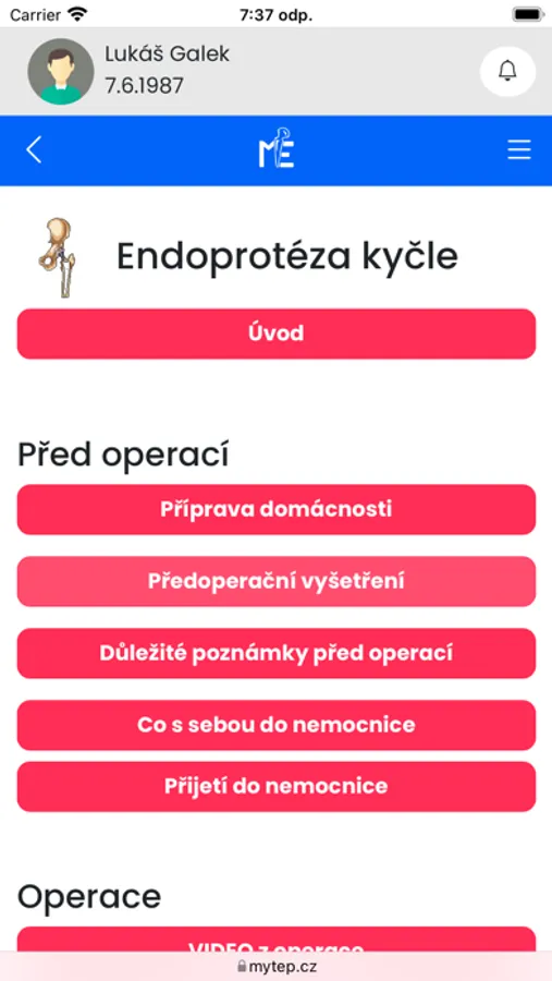 Aplikace pro pacienty, kteří se chystají k implantaci umělého kloubu nebo již mají po této operaci. Jde o průvodce předoperační přípravou, vlastní operací i pooperačním obdobím.