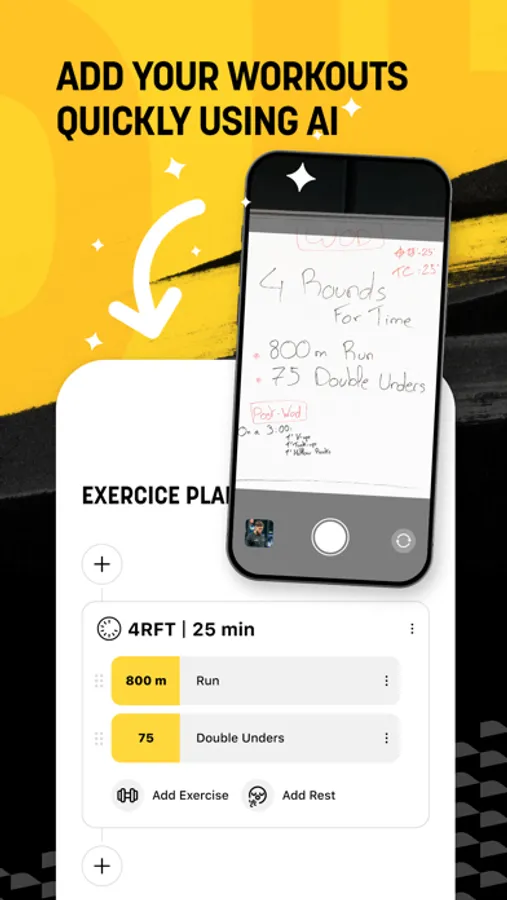 - Workout Scanner: Take a picture of the whiteboard, and our AI will create the workout for you.