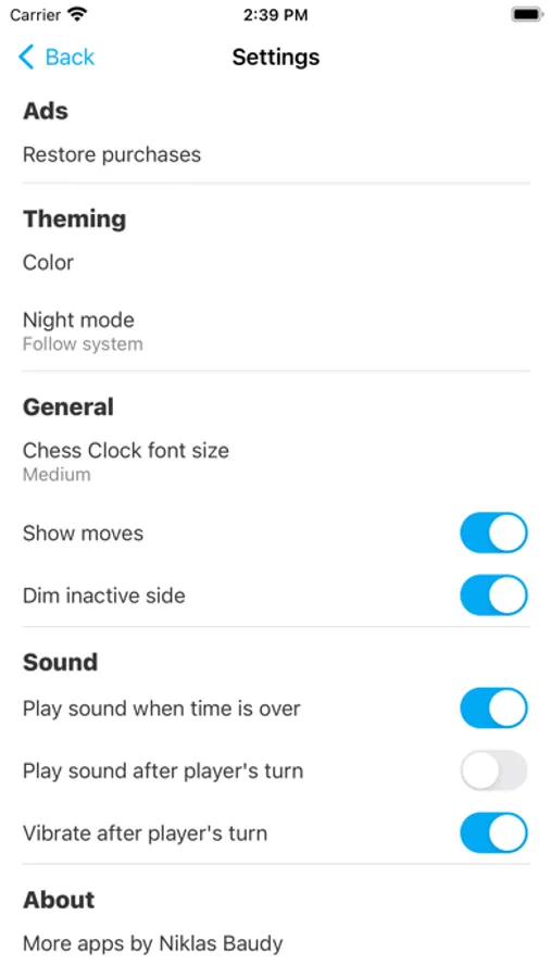 Additionally, the Chess Clock offers a way to customize the Chess Timer by using a custom chess watch theme. By default Chess Clock has a white and a dark theme.