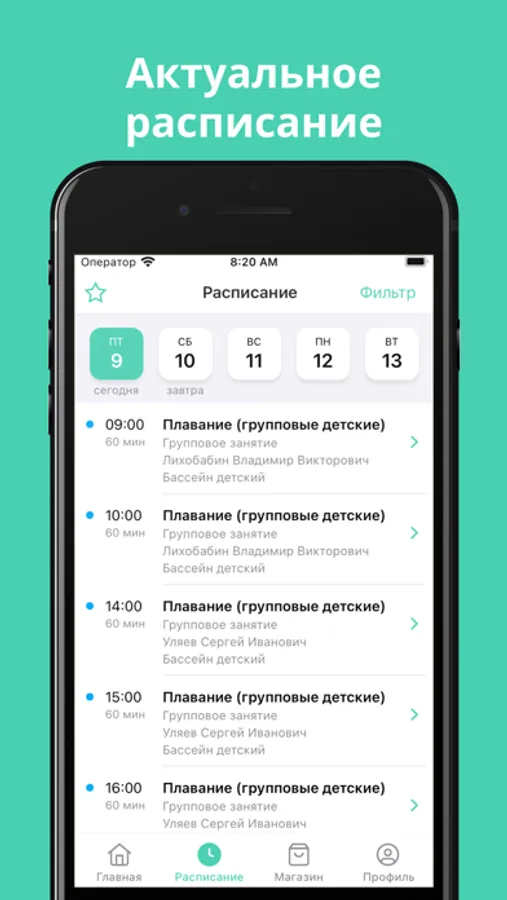Вы всегда будете в курсе актуального расписания, а также остатка услуг.