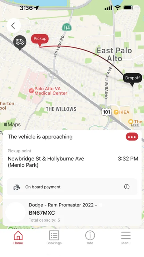 You will be able to track the vehicle in real-time on the map and see the remaining time before pickup.