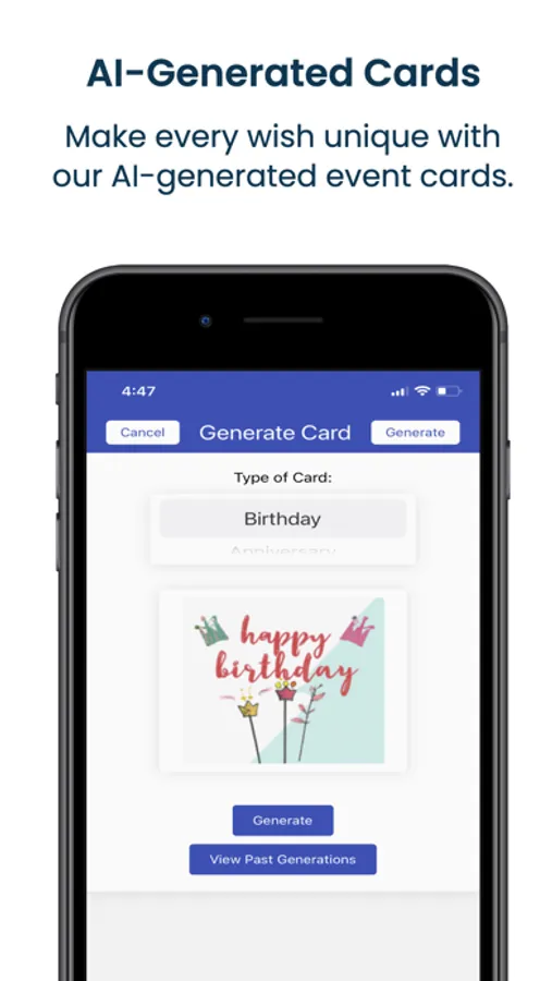AI-Generated Cards(v1.0): Send personalized, AI-generated birthday and event cards directly from our app, adding an extra touch to your celebrations.