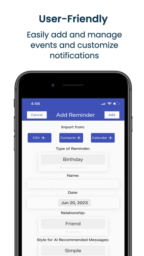 User-Friendly Interface: Easily add and manage occasions, customize notifications, and send messages right from the app.