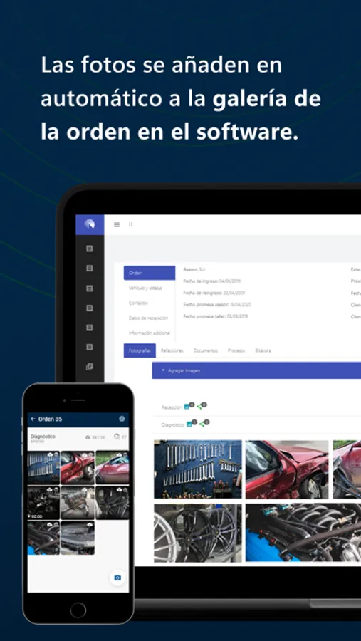 - Captura tus fotografías en cualquier momento, almacenalas en la nube, organizadas en cada orden de servicio.