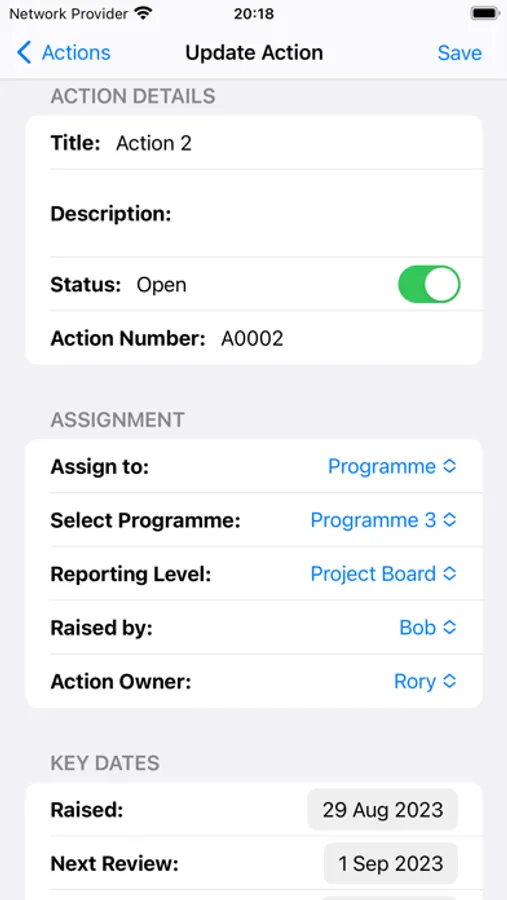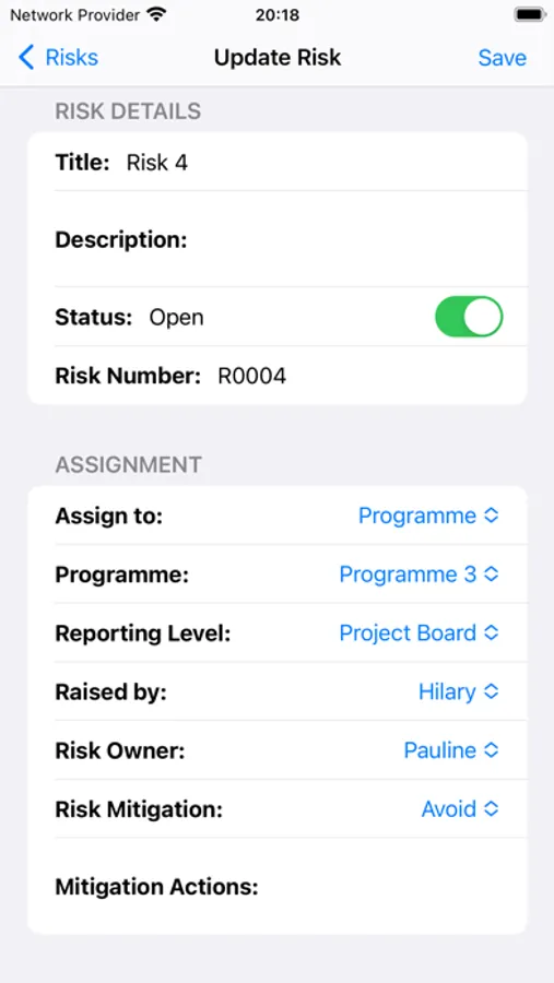 - Allocate Risks, Actions, Issues, Dependencies, Decisions and Assumptions to Programmes, Projects or Workstreams and set the appropriate trpkrting and/or approval level
