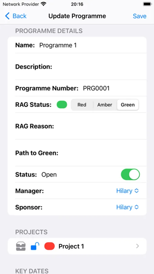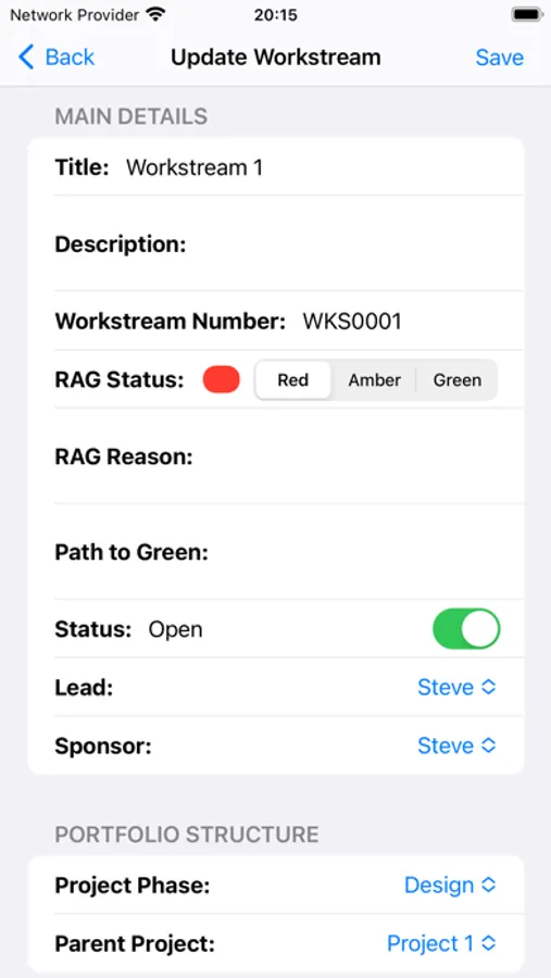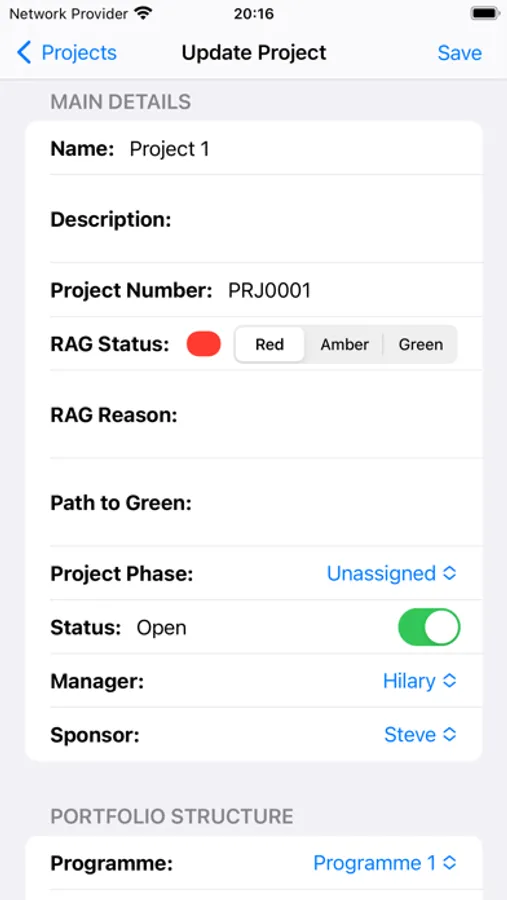 - Build your portfolio structure by creating Programmes, Projects and Workstreams and then set the relevant parent items.