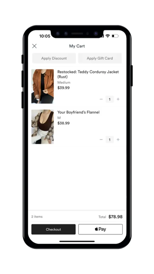 Tap, swipe, shop and secure your new products in an instant with our super easy checkout.