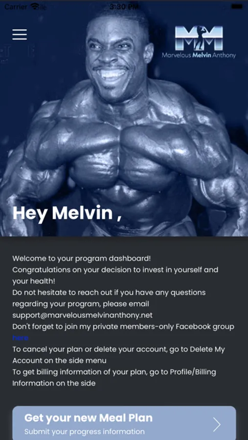 Download the Marvelous Melvin Anthony members app to take ownership of your health and fitness today. This app will serve as your mobile companion throughout your fitness journey where you can access all your customized plans and programs specifically designed to help you achieve your fitness goals.
