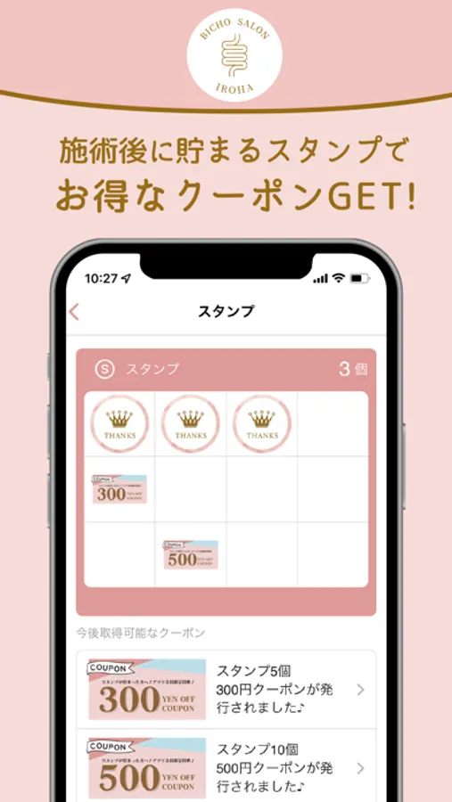 ご来店スタンプをためるとお得なクーポンが発行されます(ご利用条件がある場合がございます)