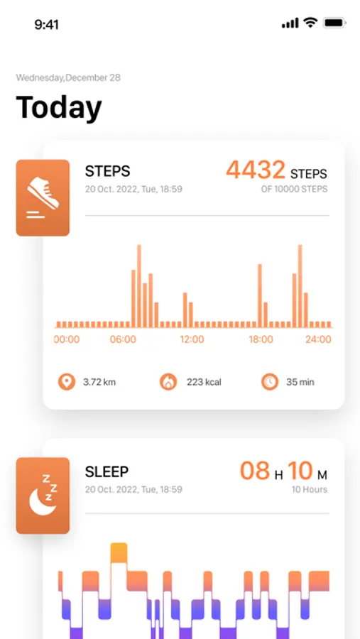 Sync your steps,calories,mileage,heart rate,sleep and your exercise records recorded by your watch. The newly designed UI can display the data more intuitively.