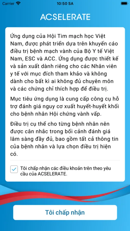Ứng dụng của Hội Tim mạch học Việt Nam, được phát triển dựa trên khuyến cáo điều trị bệnh mạch vành của Bộ Y tế Việt Nam, ESC và ACC. Ứng dụng được thiết kế và sản xuất dành riêng cho các Nhân viên y tế với mục đích tham khảo và không dành cho bất kì ai không đủ chuyên môn và các chứng chỉ thích hợp để điều trị.