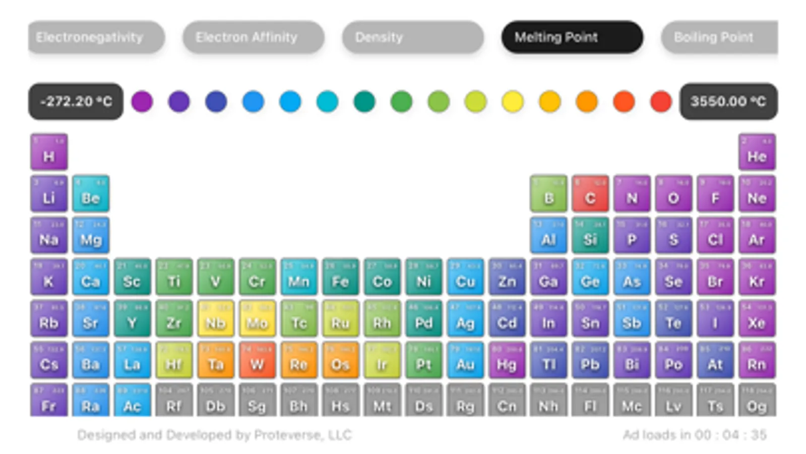 2. Color-Coded Elements: Personalize your learning experience by customizing the colors of elements based on their properties such as metallicity, atomic radius, electronegativity, and more. This visual representation allows you to easily visualize patterns and trends within the periodic table.