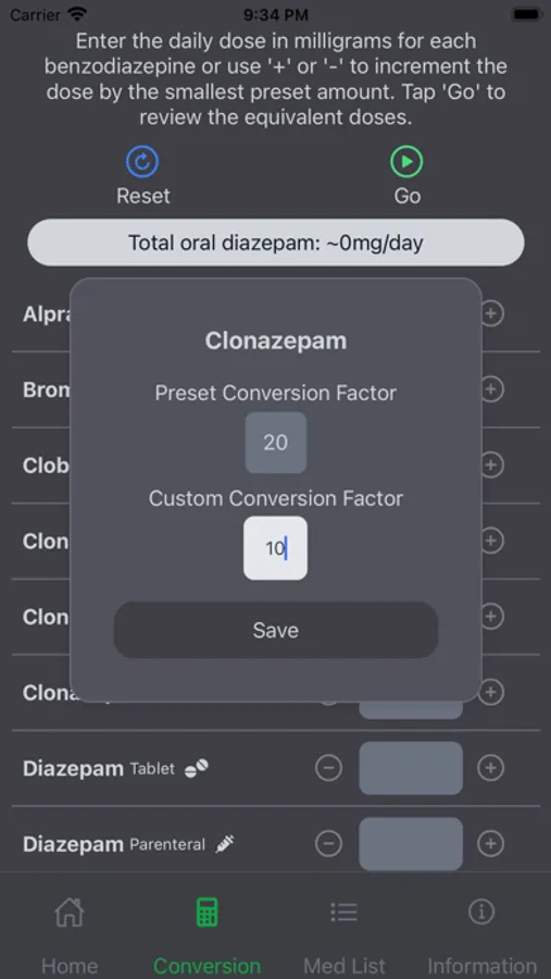 - Customizable conversion factors: Users can customize the conversion factors for each benzodiazepine medication according to their specific requirements.