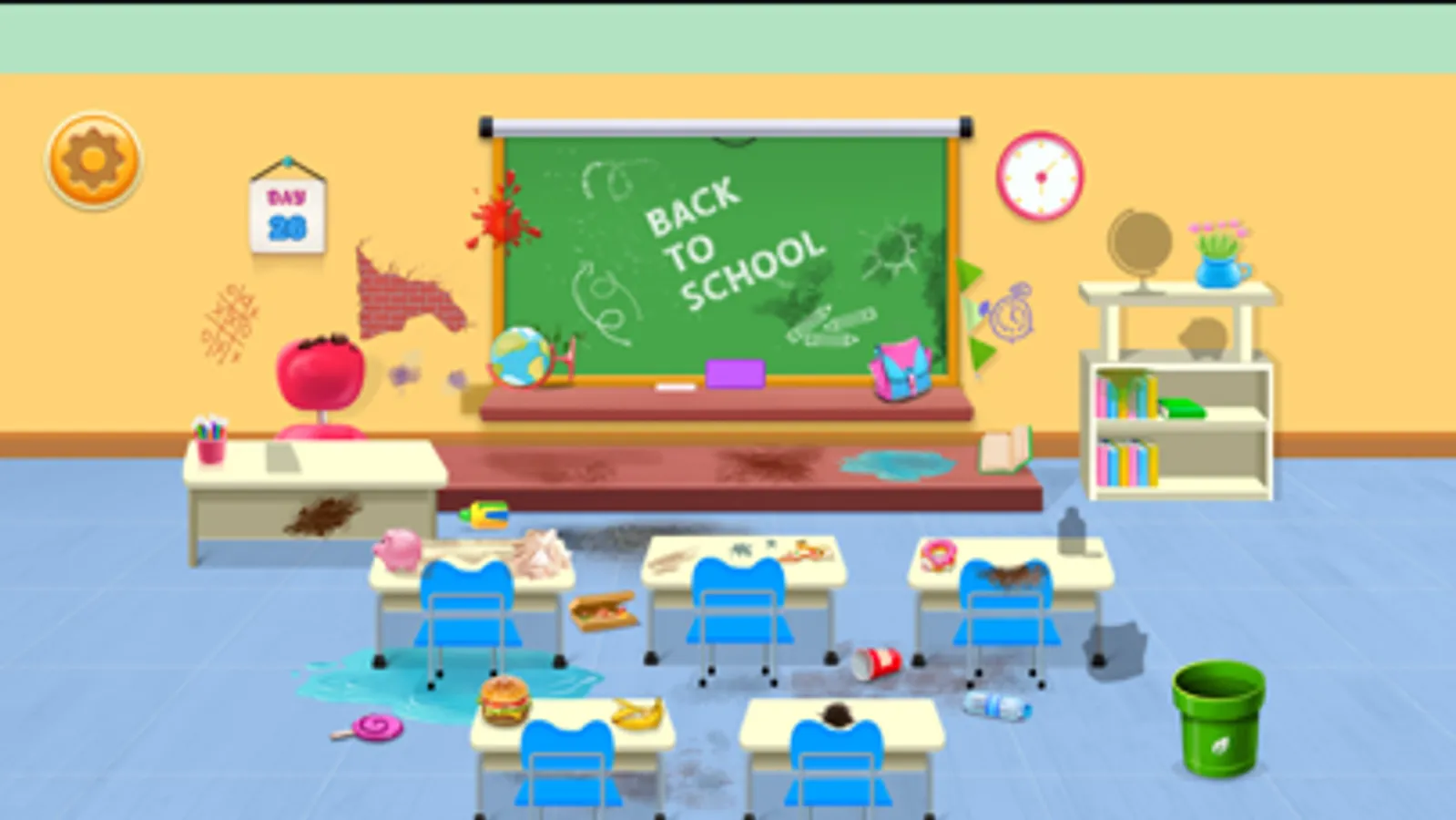 - Be ready! dressup for school and ready to clean your messy school