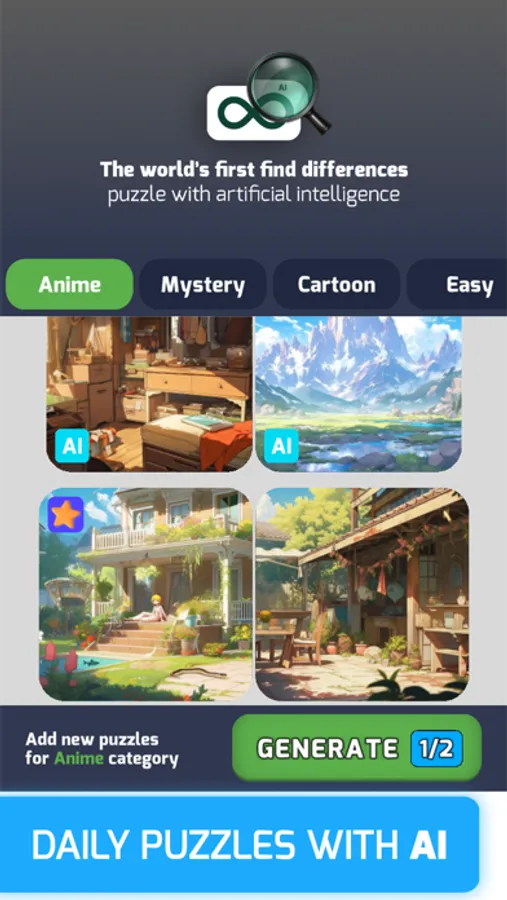 AI-powered game, generating new puzzles and hidden object challenges daily.