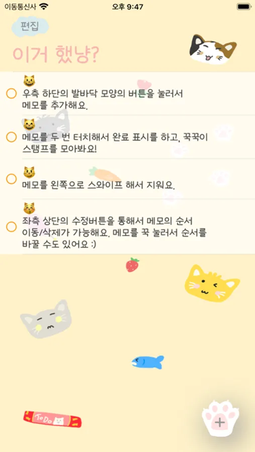 6. 편집 버튼을 눌러 메모의 삭제 및 순서 이동이 가능해요.