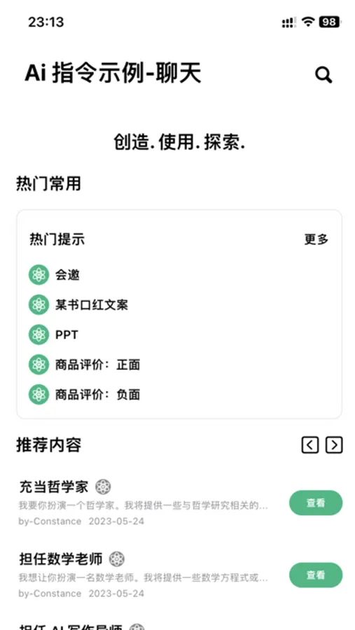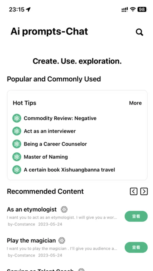Ai Prompts-Chat 是一款让用户学会如何与ai正确聊天提问问题文案示例应用。