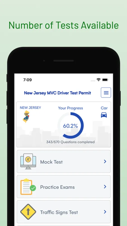 Our New Jersey NJ Driver Test Permit app , is easy to use and accessible from anywhere, on any device. You can practice on your phone, tablet, at home or on the go. And with our free and unlimited tests, you can practice as many times as you need to feel comfortable and confident for the real DMV Written test .
