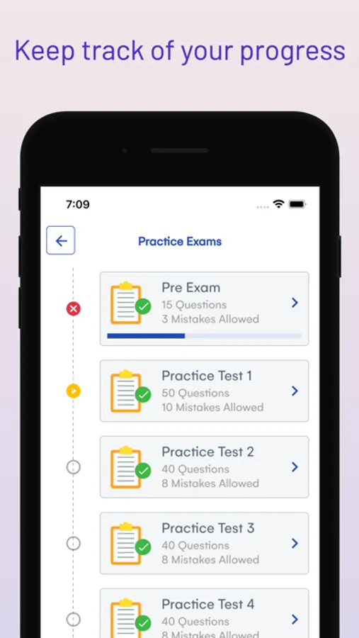 - You can track how many questions you have done correctly, incorrectly, and get a final passing or failing score based on official passing grades