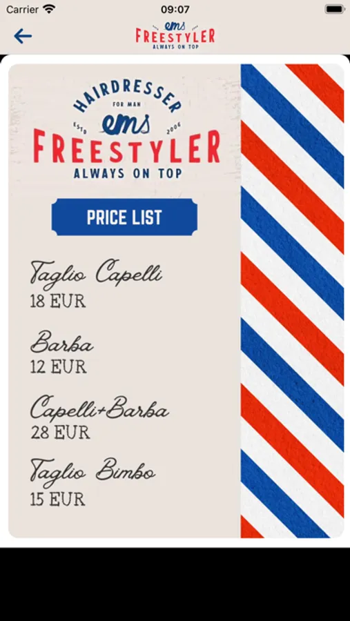 Scegli tra i servizi di BarberShop di Ems Freestyler: Taglio, barba, taglio + barba e taglio bimbo.