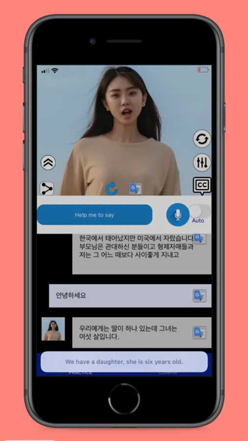 - Practice Korean conversation: Participate in AI-simulated conversations with Korean people, helping you to talk about any topic.