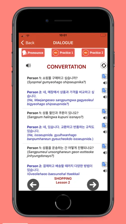 - Improve your Korean listening and communication by practicing the available dialogues.