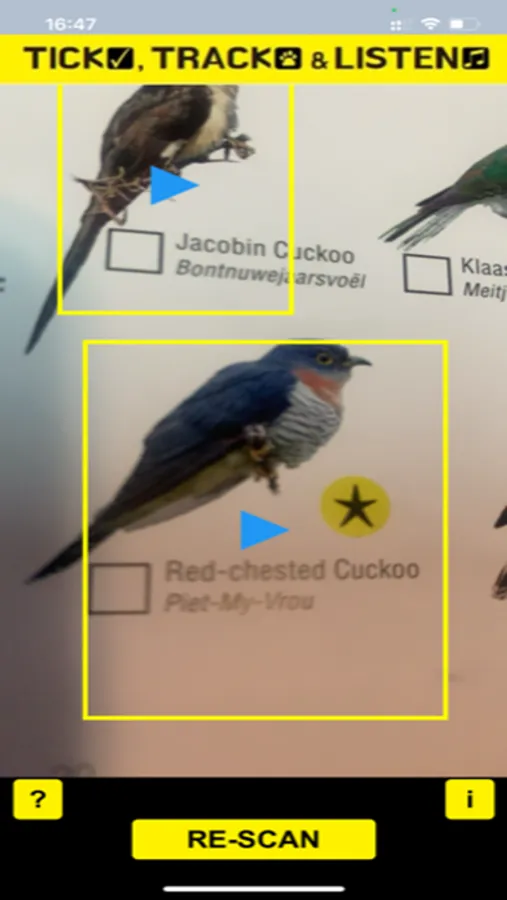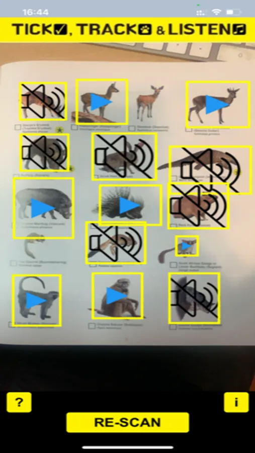Listen to bird and animals sound with our app. Simply aim the app to the image of the bird or animals in the book, and listen to it call.
