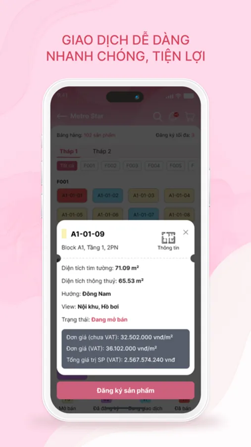 - The product list of apartments or land plots are displayed in a vivid and easy to understand way
