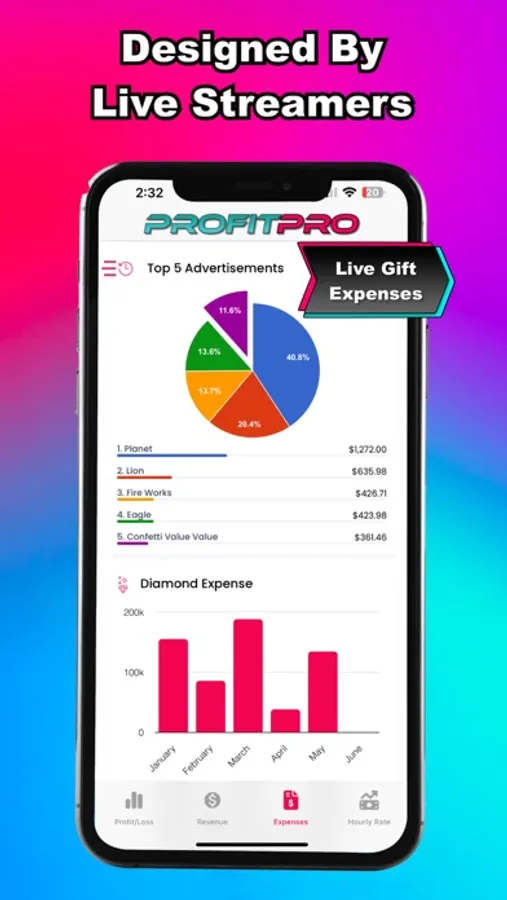 - Historical Data Insights: Harness the power of your past gift revenue and advertising expenses, uncovering trends and insights to optimize your live streaming success.