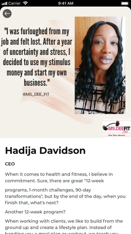 Kick-start your fitness journey with Ms. Dee Fit. Together with Hadija Davidson, you'll have the best combination of nutrition & exercises available on a single app.