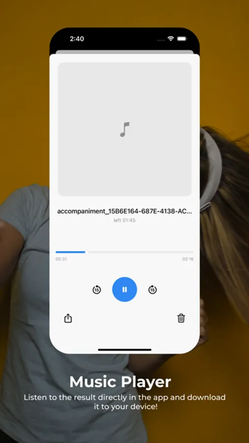 You'll ask what our app can do, and we'll tell you that our system has artificial intelligence functionality and removes vocals from the audio file you uploaded to our system. Everything works as fast and comfortable as possible, process your tracks and listen to them in a minuscule format.