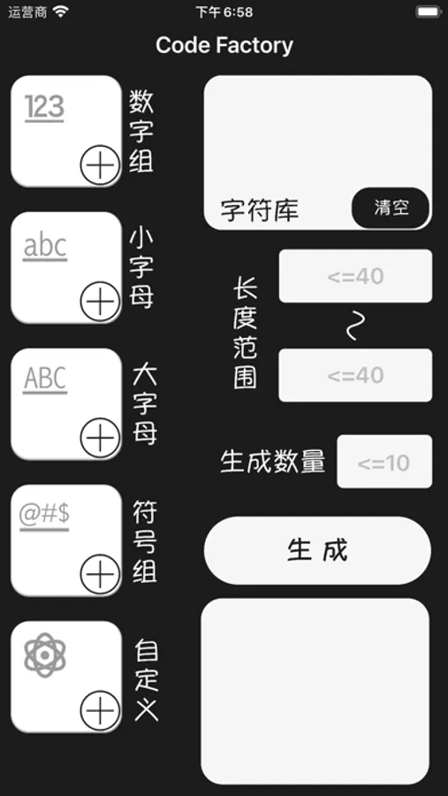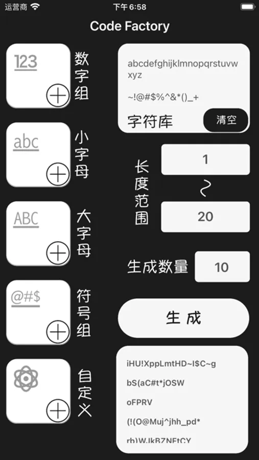Code Factory 是一款可以随机生成自定义字码的工具,它可以设定生成数量,已经生成的类型范围和数量范围。