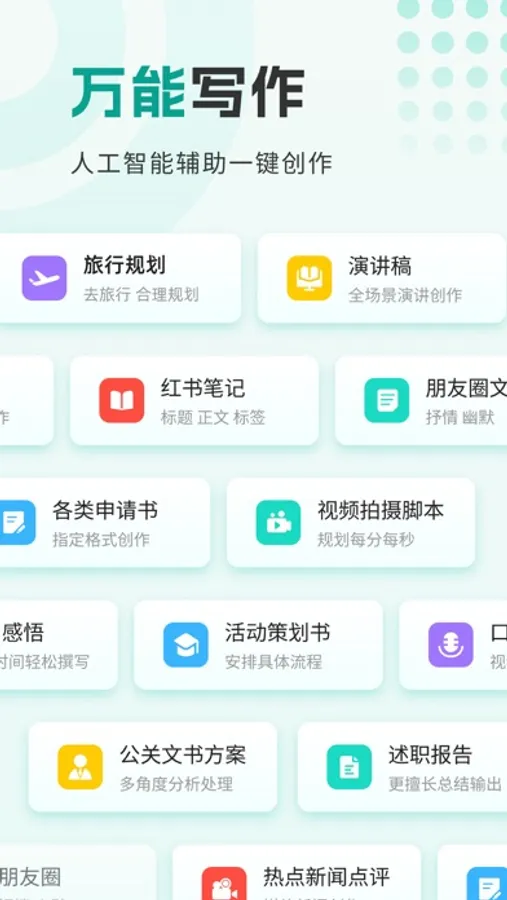 轻松 get 各行各业大神同款写作秘籍,一键生成&智能改写&创作同款,助您高效办公学习,实现自我提升!