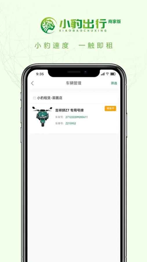 小豹出行商户端是一款专为电动车租赁车行管理人员提供车辆管理、车辆调拨、订单管理、财务管理等功能的APP。