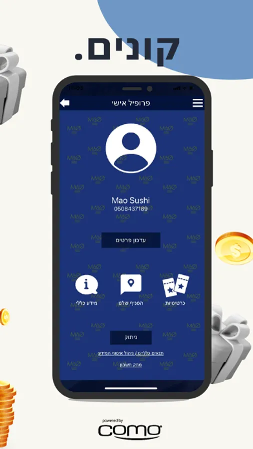באפליקציה זו תוכלו להישאר מועדכונים וליהנות ממבצעים,הטבות והנחות. את המתנה הראשונה מקבלים מיד עם ההרשמה, לכן הורידו את האפליקציה כבר עכשיו והרשמו! מבית COMO