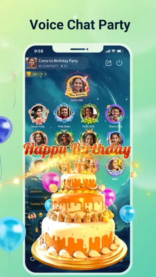 Create or join a voice chat room, chat with friends using text or voice, and enjoy chat parties.