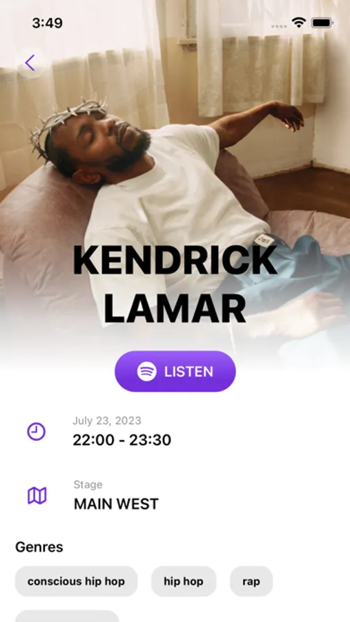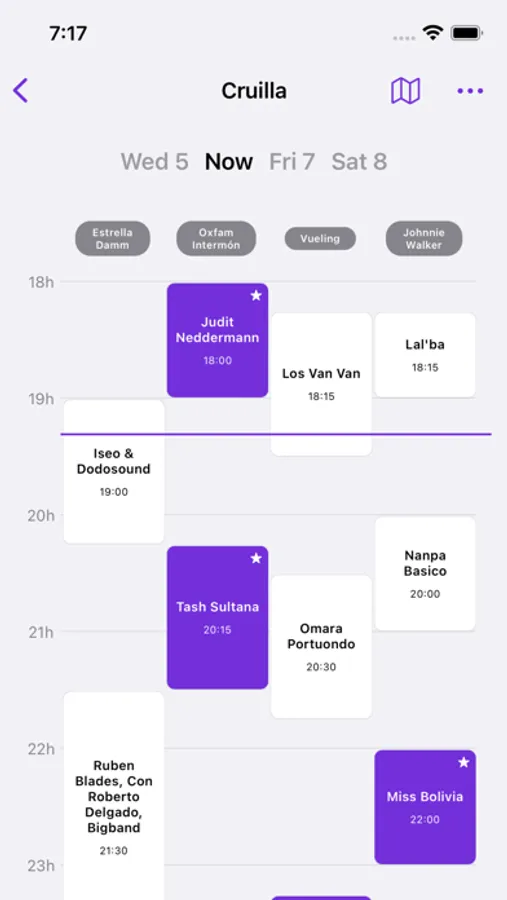 The timeline of the music festival shows you in real-time which artists are playing at which stages so that you can decide during the festival whom you want to listen to next.
