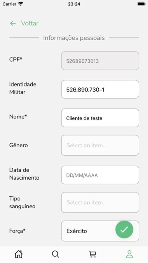 Atendemos a todas as Forças Armadas. Temos uniformes para Exército, Aeronáutica e Marinha, com personalização de tipo sanguíneo, patente, entre outras disponíveis