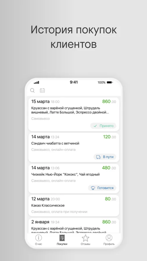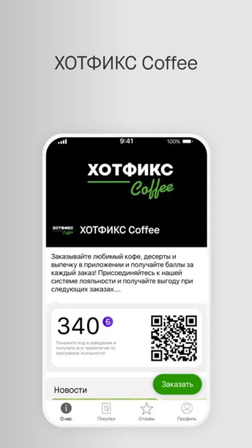 Заказывайте любимый кофе, десерты и выпечку в приложении и получайте баллы за каждый заказ! Присоединяйтесь к нашей системе лояльности и получайте выгоду при следующих заказах.