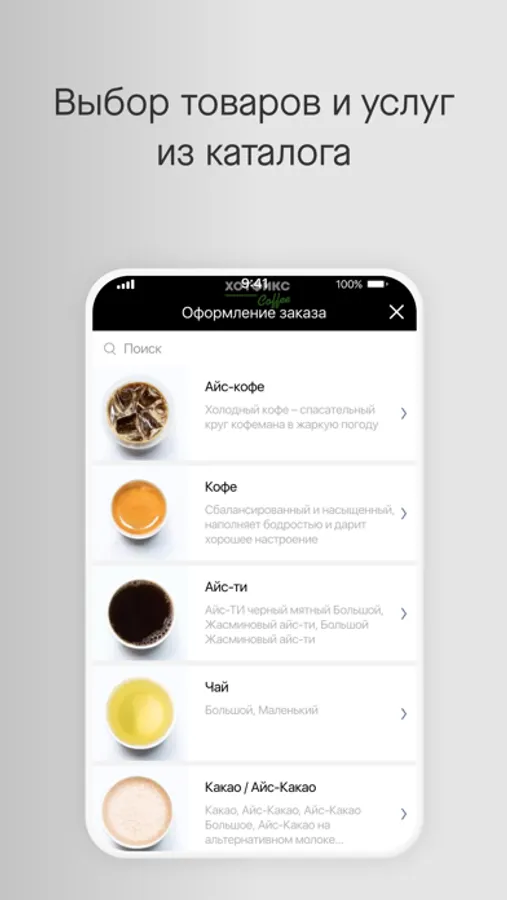 - в несколько простых шагов заказать любимый кофе, десерты, выпечку и другие позиции нашего меню;