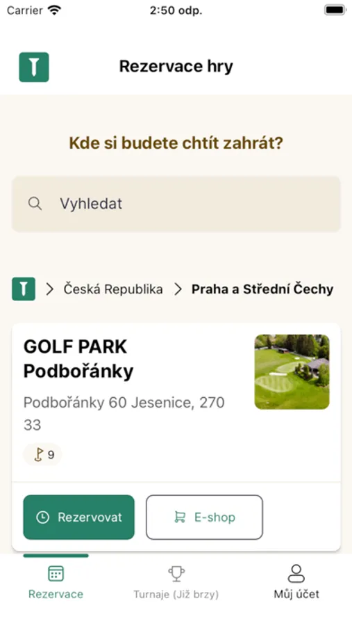 Aplikace slouží pro snadný výber a rezervaci golfových hřišť v ČR a na Slovensku