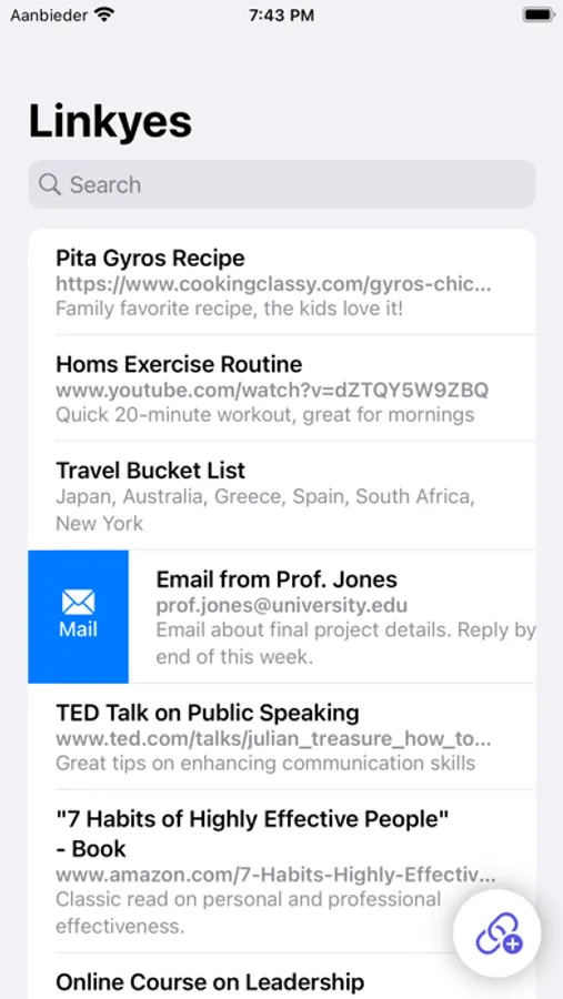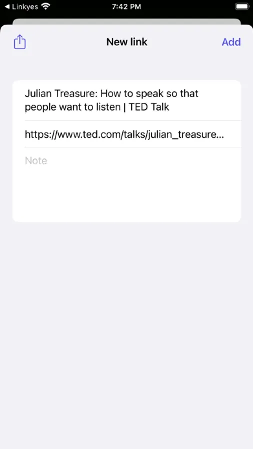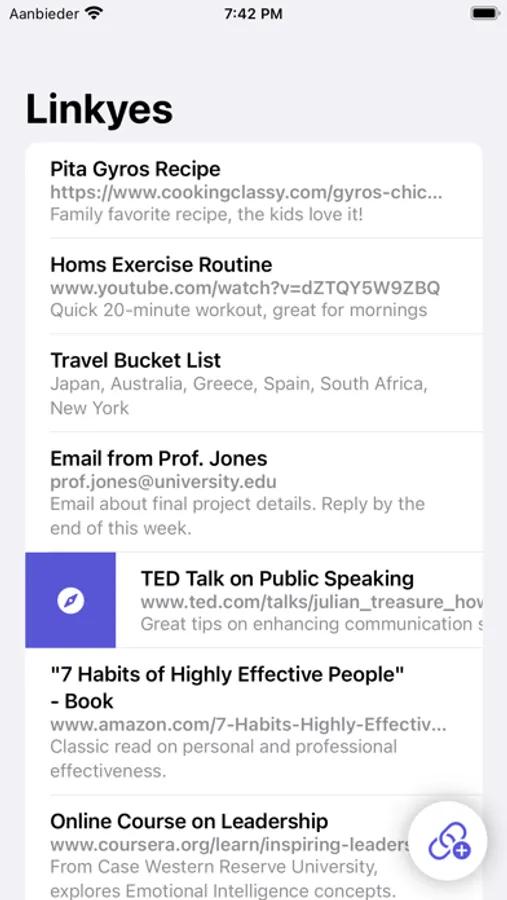 As simple as clicking "Share > Linkyes," our app stores your links in an easily navigable platform. Say goodbye to lost recipes or important articles - with Linkyes, your links are always just a tap away.
