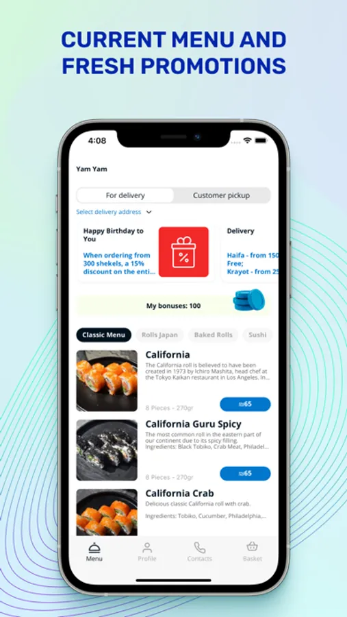 Yam yam is a great opportunity to eat delicious rolls, sushi and wok, not only in a restaurant, but in the office and at home.