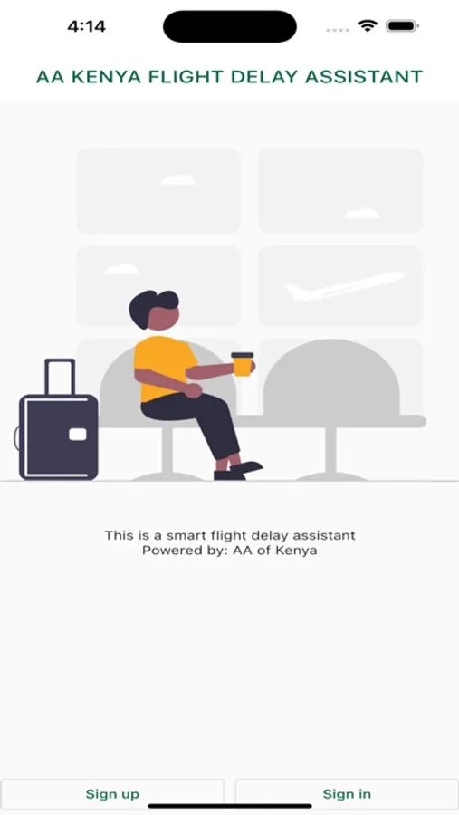 AA Kenya Flight Delay Assistant is an application capable of tracking any delays of more one hour in your flight. If we detect the delay, we will give you a voucher that will grant you access to VIP lounges at any airport all over the world.